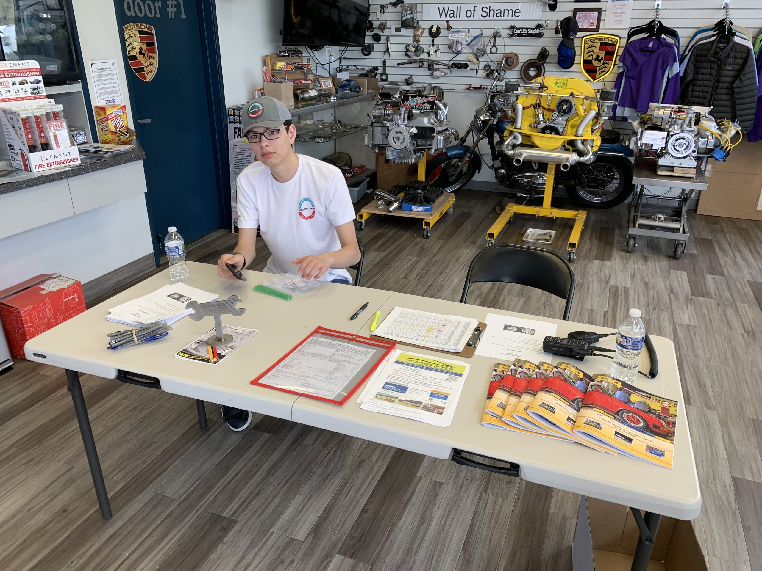 Our starting location was at Munk’s Motors in Waterford. Registration opened at 2PM and the first car out was at 3:30PM. Attendees were able to walk through the shop and around the grounds to appreciate all of the beautiful vehicles in attendance and boy were there a lot of Porsches. The turnout was so large that we ran out of space to park cars.